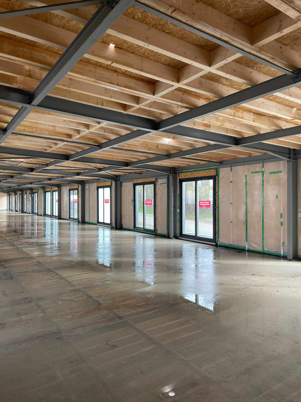 Les éléments du bâtiment sont conçus et préfabriqués en atelier à Châtenois, permettant :